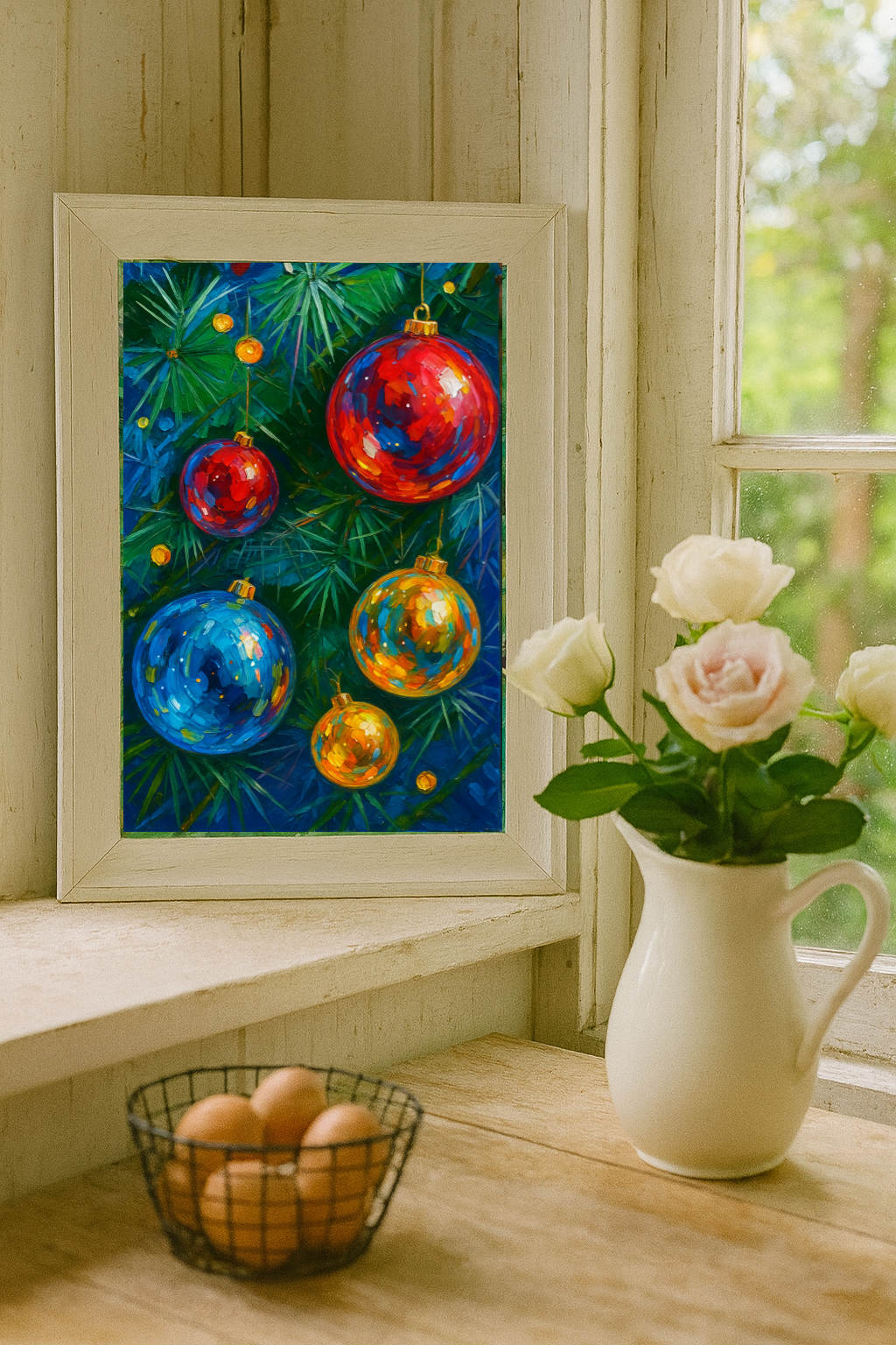 Christmas Ball Oil Painting Original Ornament Winter Holiday Festive Tree Artwork Xmas Countdown Home Decor Gift