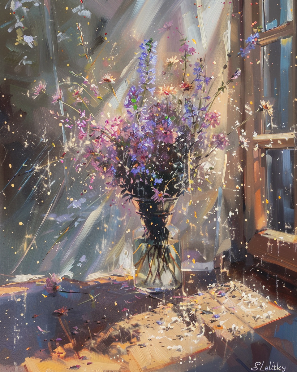 For me, the Ukrainian language has always been a palette of light and shadow. When I write or paint, I try to translate its inner music into visual form — the tenderness of lelitky, the mystery of mizh’yarya, the soft humor of pityatky.